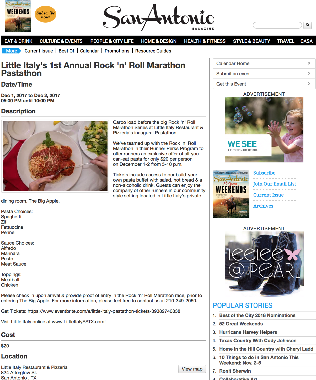 Little Italy’s 1st Annual Rock ‘n’ Roll Marathon Pastathon